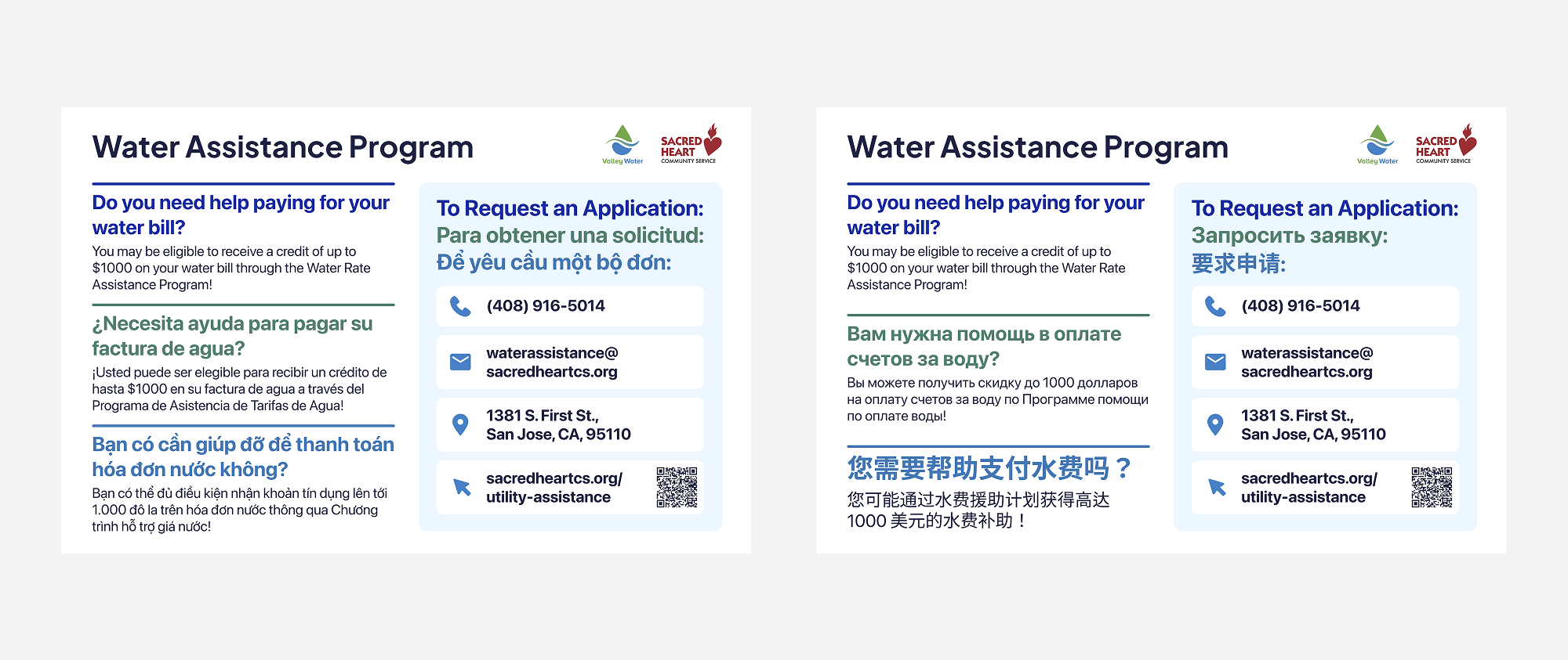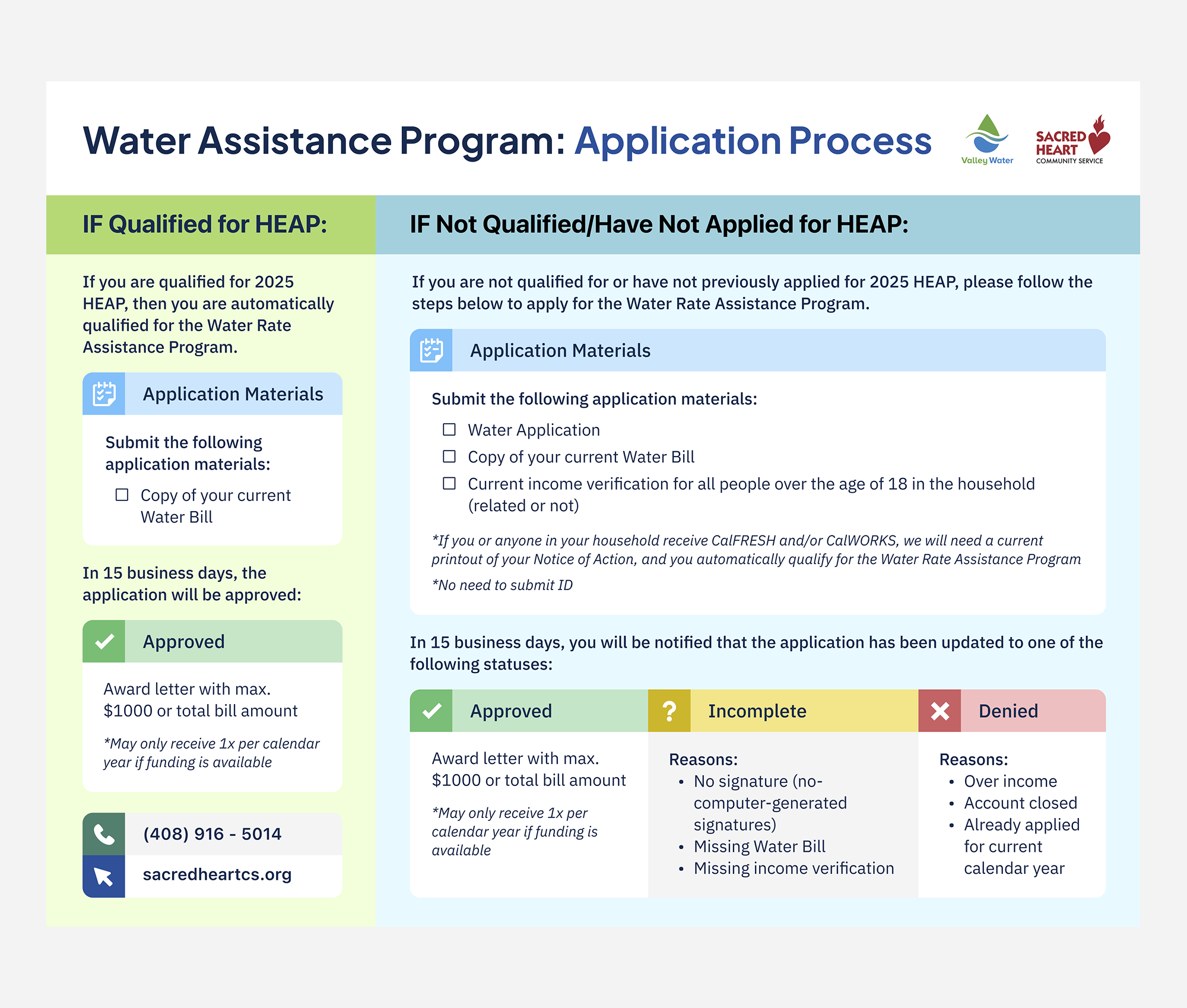 The Valley Water Rate Assistance Program (VW WRAP) is a water bill assistance program in partnership with Santa Clara County Valley Water and Sacred Heart Community Service. The program provides up to a maximum of $1,000 for water relief to Santa Clara County households with low income with a current or past due residential water bill.